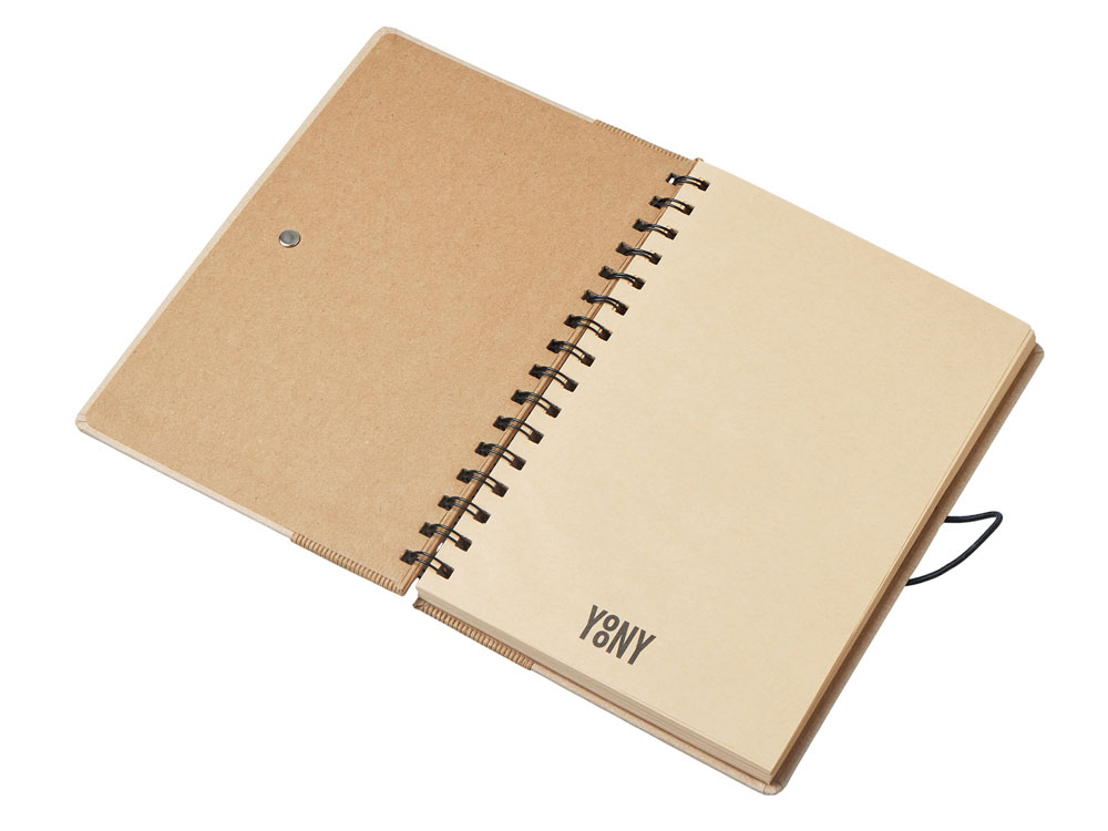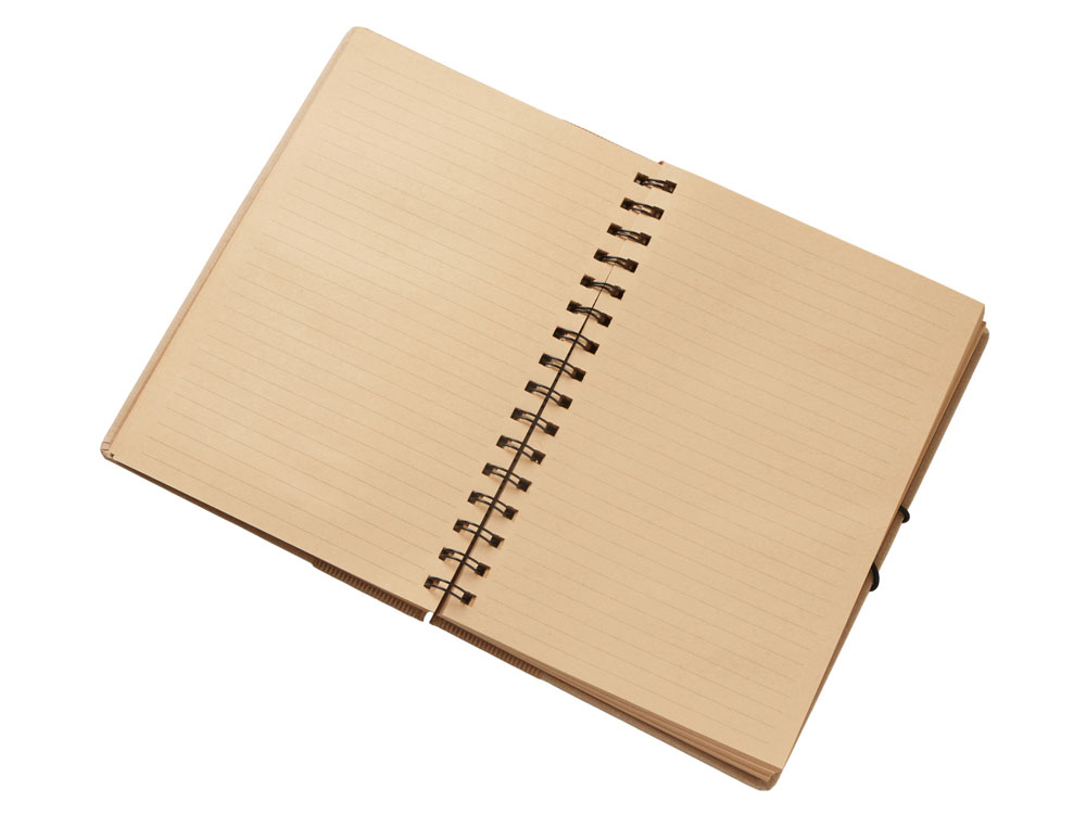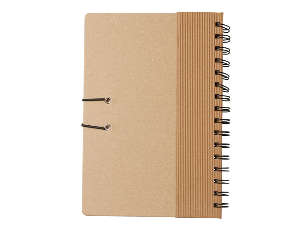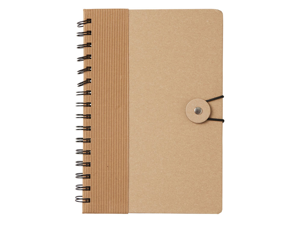 Крафтовый блокнот на спирали с фиксирующей резинкой. 80 листов коричневой бумаги 70 г/м2. -