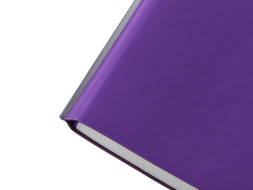 Гибкая обложка выполнена из искусственной кожи, корешок дополнен металлической вставкой.