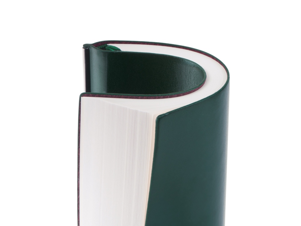 Гибкая обложка выполнена из искусственной кожи, корешок дополнен металлической вставкой.