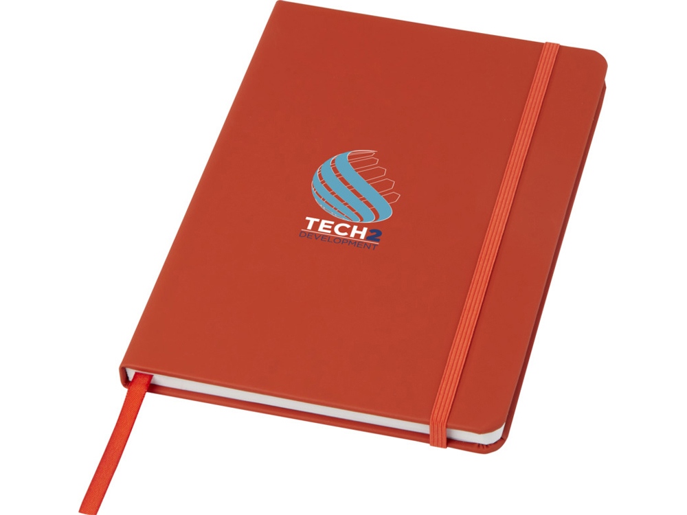 Блокнот А5 с цветной резинкой и закладкой. 96 листов белой бумаги (60 г/м2). FSC certified paper, PU Plastic. FSC Mix Credit P7.1 CU-COC-877277.