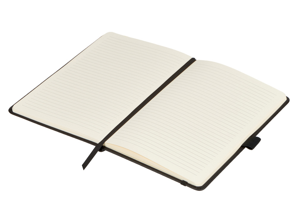 Блокнот в твердой обложке с закругленными углами представлен в широком ассортименте цветов. Внутри 80 листов кремового блока плотностью 70 г/м2 и ляссе в цвет обложки, которая упрощает навигацию по блокноту.