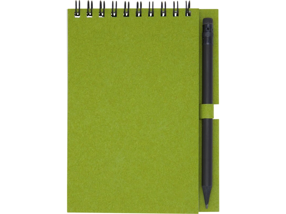 Блокнот на гребне из 40 листов плотностью 80 г/м², обложка и листы изготовлены из переработанной бумаги, соответствующей FSC, без декора. В комплект входит черный карандаш. Блокнот изготовлен в Италии.