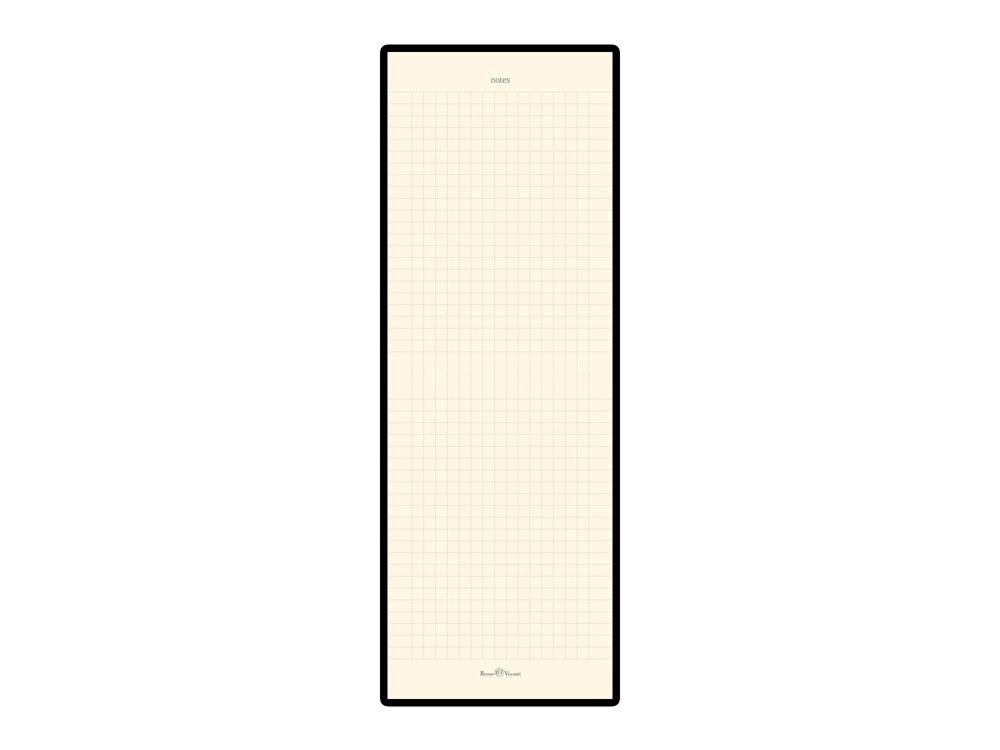 Вертикально ориентированный блокнот для записей. Линовка блока - клетка, 8 последних листов блока имеют вертикальную и горизонтальную перфорацию, которая позволяет легко отрывать листы не нарушая целостности блока. В блокноте предусмотрен нелинованный раздел для эскизов и набросков. На внутренней стороне задней обложки есть удобный карман для визиток и записок. Твердый переплет предохраняет блокнот от механических повреждений. Резинка фиксирует блокнот в закрытом виде. Блокнот подойдет для записей как в офисе, так и на выездных совещаниях. Готов к персонализации. -