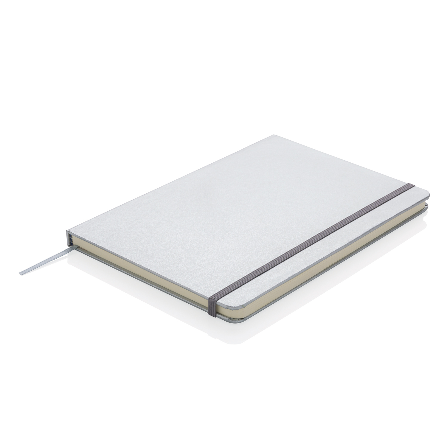 Блокнот для записей Basic в твердой обложке формата А5 на резинке с ляссе. 72 страницы, линованная бумага кремового цвета, плотностью 70 г/м2.