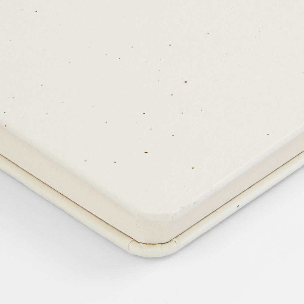 Бумага и обложка произведены из переработанных пакетов из-под молока. Обложка из картона плотностью 140 г/м2 .Блок в линейку: