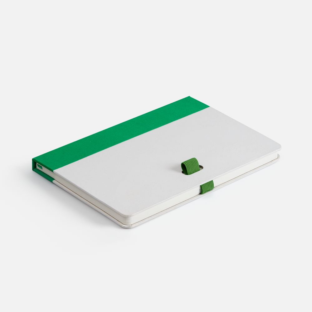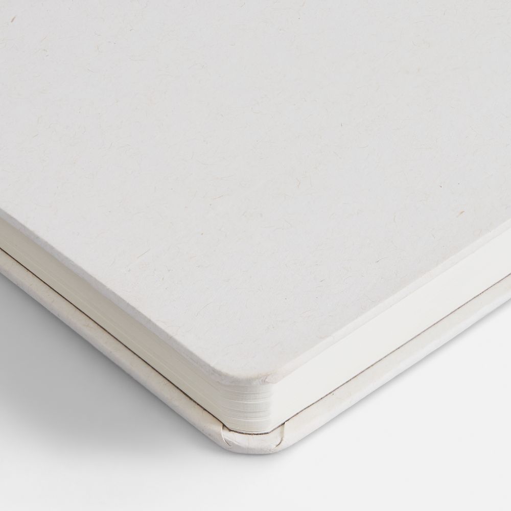 Бумага и обложка произведены из переработанных пакетов из-под молока. Обложка из картона плотностью 140 г/м2 .Блок в линейку: