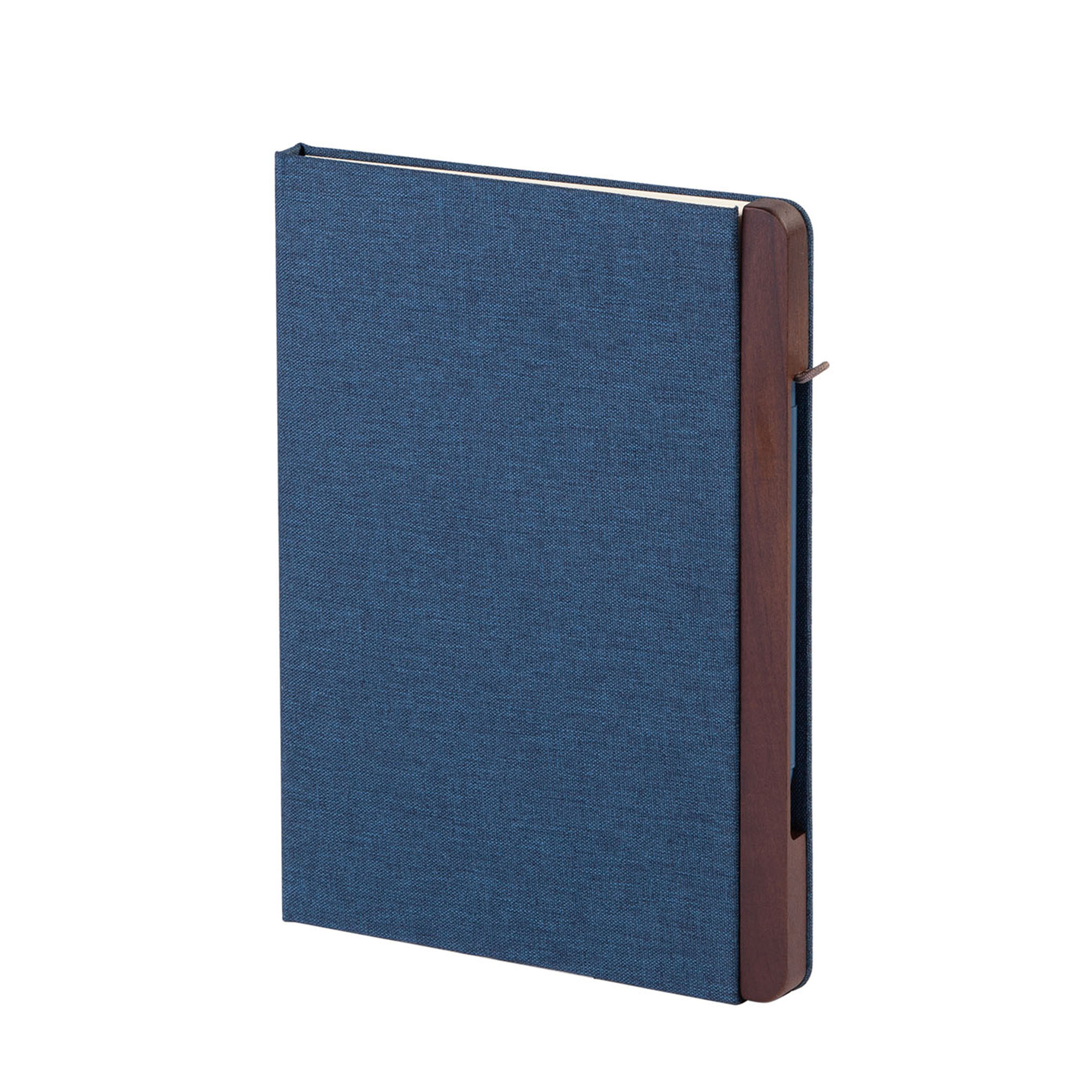 В блокноте 160 страниц в линейку кремовой бумаги плотностью 80 г/м2. Материал текстильной обложки изготовлен из переработанного (RPET) пластика. Ручка с синей пастой, стержень легко заменить.