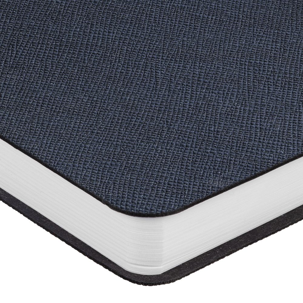 Под плотным фактурным материалом обложки c четким геометрическим рисунком и металлическим блеском скрывается блок с абсолютно чистыми белыми листами — для полной свободы творчества. Скругленные углы придают мягкости и изящества, а резинка надежно удерживает блокнот в закрытом состоянии.Блокнот с гибкой обложкой, выполнен из материала Saffian, синий НН. Дополнен ляссе в цвет обложки.