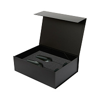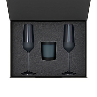 Подарочный набор свеча Enigma + 2 бокала для шампанского Emerald в серой коробке