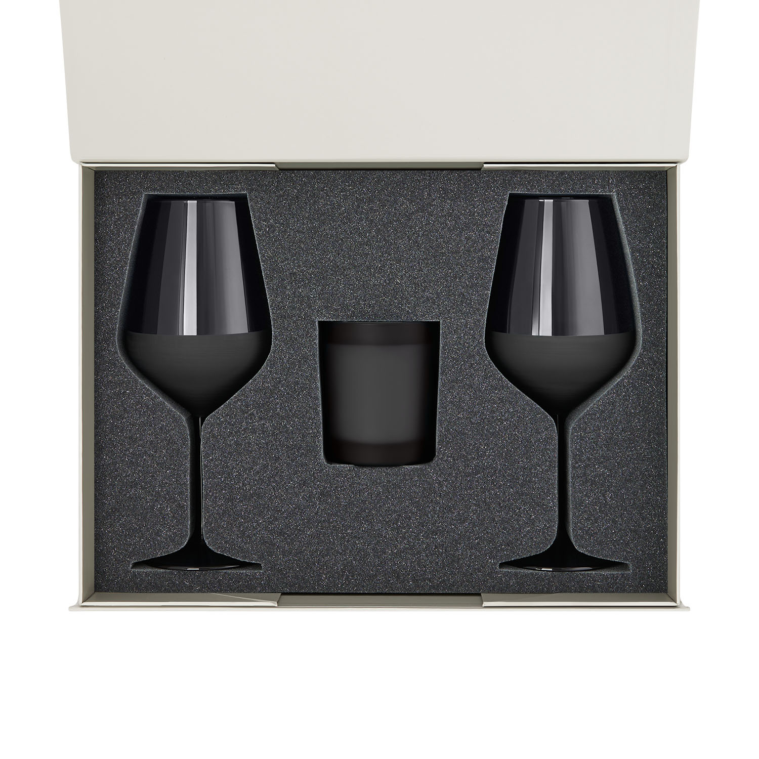 Подарочный набор свеча Enigma + 2 бокала для вина Black Edition в серой коробке