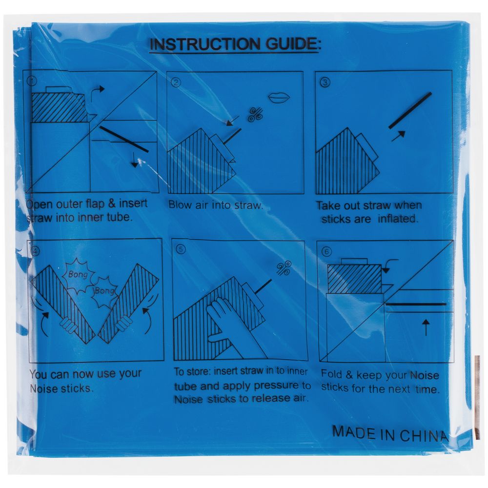 В комплекте две надувных палки и трубочка для надувания.