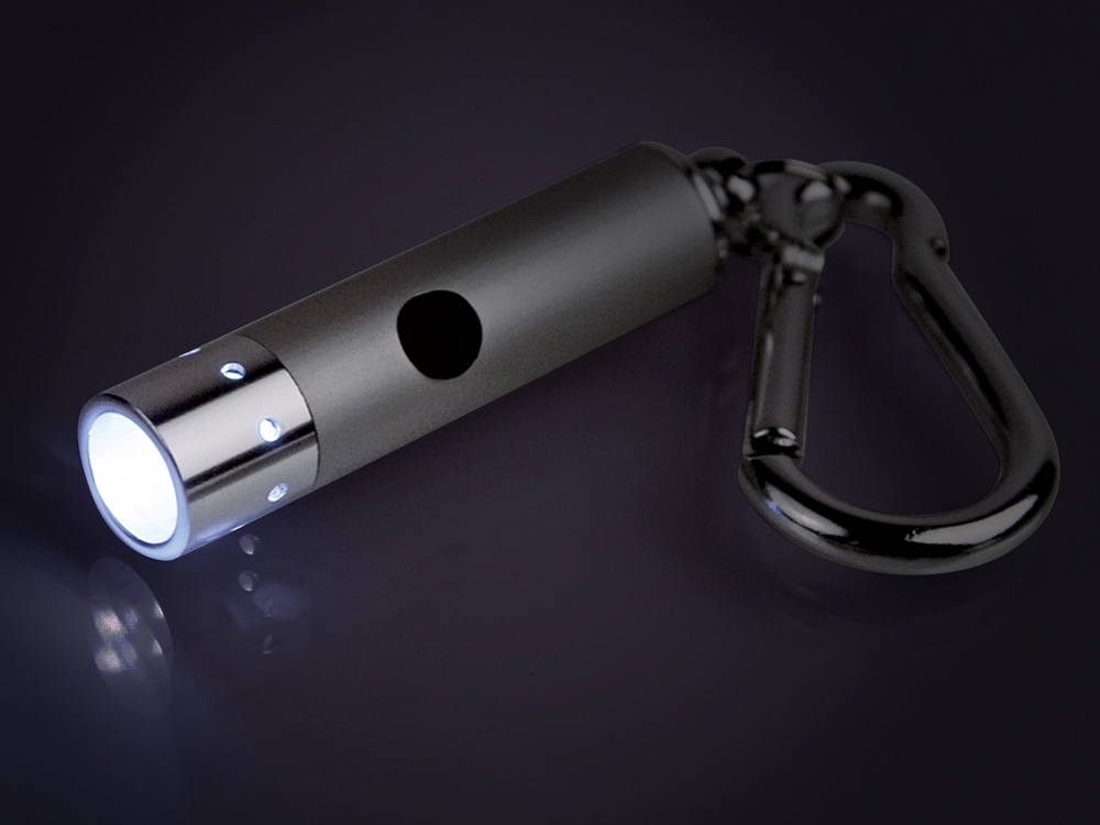 Металлический брелок имеет встроенный яркий фонарик, а вместо кольца крепления – симпатичный карабин. Очень пригодится для подсветки в темноте, ведь вряд ли кто-то ежедневно носит с собой обычный фонарь. -