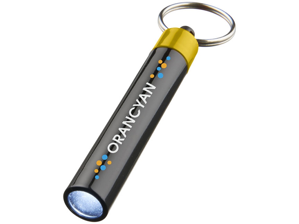 Брелок-фонарик Retro. Покрытие УФ, фонарик с одним диодом с нажимной кнопкой вкл/выкл. Металлическое колечко. Батарейки в комплекте. АБС пластик. -