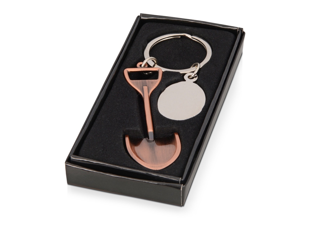 Брелок с шильдом Лопата послужит оригинальным подарком или сувениром для клиентов строительных компаний, магазинов инструмента и т.д. Брелок покрыт бронзовой краской, что обеспечивает его стильный вид. -