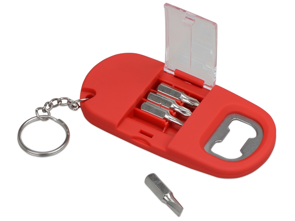 Брелок включает в себя 2 плоские и 2 крестообразные насадки, прочную металлическую открывалку и небольшой фонарик. Корпус сделан из плотного пластика с мягким покрытием soft-touch. Встроенный фонарик позволяет подсвечивать рабочую зону. -