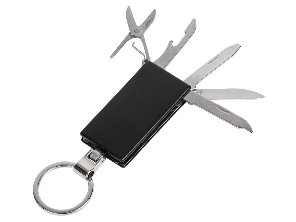 Брелок-мультитул на кольце в металлическом корпусе с заметным полем под нанесение.
