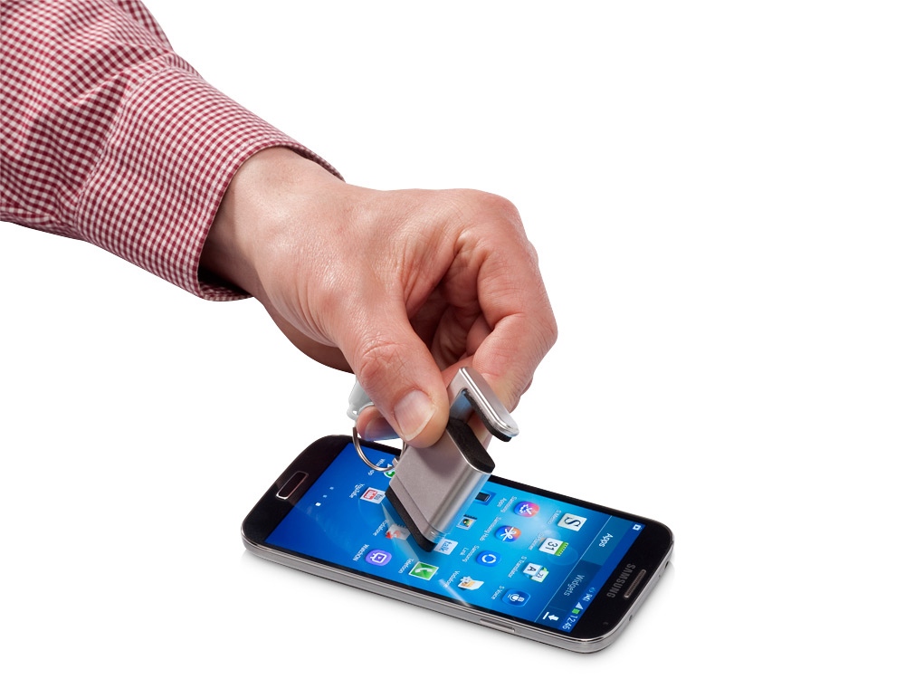 Подставка-брелок для мобильного телефона с губкой для чистки экрана. Функциональный промо-сувенир для продвижения цифровых устройств с сенсорным экраном: мобильных телефонов, планшетов, фотоаппаратов и т.д. Различные расцветки. Возможно нанесение изображения по вашему эскизу. -