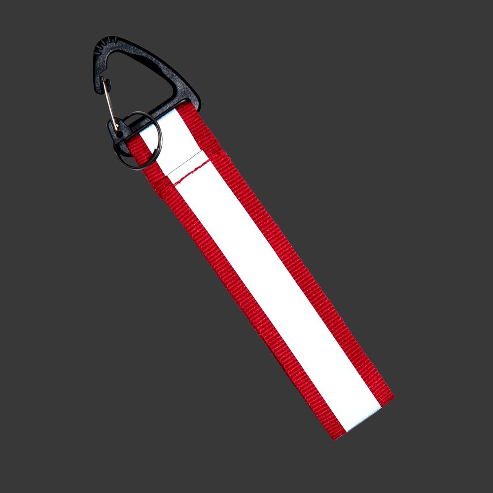 Светоотражающий брелок Flashline становится заметным в темное время суток при попадании света на центральную полосу.