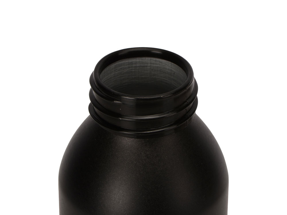Бутылка для воды Joli выполнена из алюминия, что обеспечивает ей, при довольно солидном объеме (650 мл), сравнительно малый вес. Матовый корпус угольно-черного цвета создает интересный контраст с прозрачной крышкой яркого сочного оттенка, дополненной силиконовой петелькой в тон. Крышка плотно прилегает при закручивании, что обеспечивает Joli герметичность, а текстура покрытия корпуса не дает руке скользить при захвате.