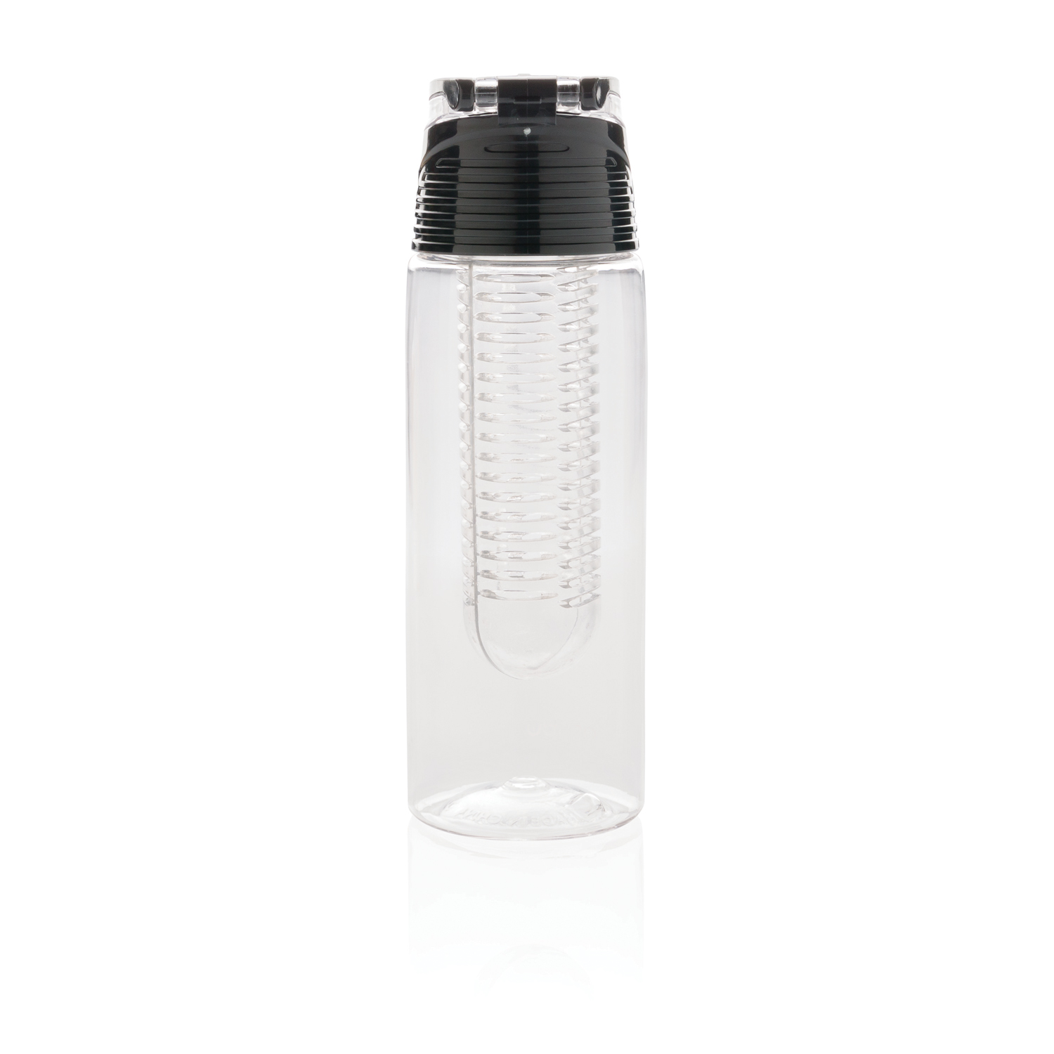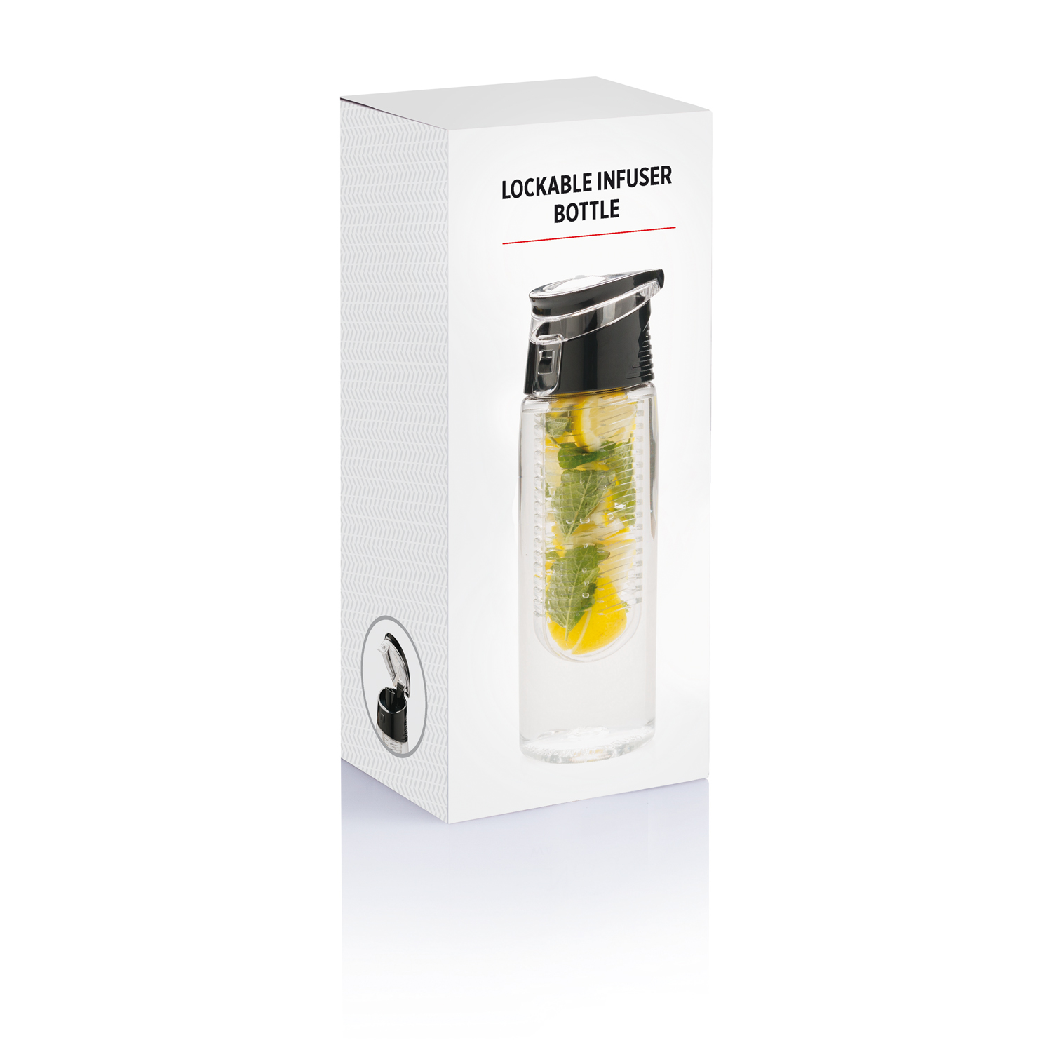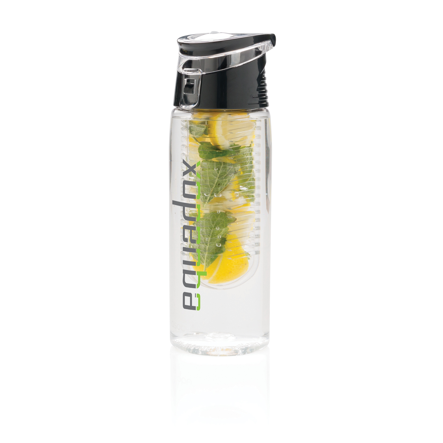 Стильная бутылка для воды Lockable с контейнером отлично подходит для приготовления фруктовых или травяных напитков. Корпус изготовлен из износостойкого и экологичного материала Tritan, а крышка выполнена из ABS-пластика. Защита от проливания. Объем - 700 мл.
