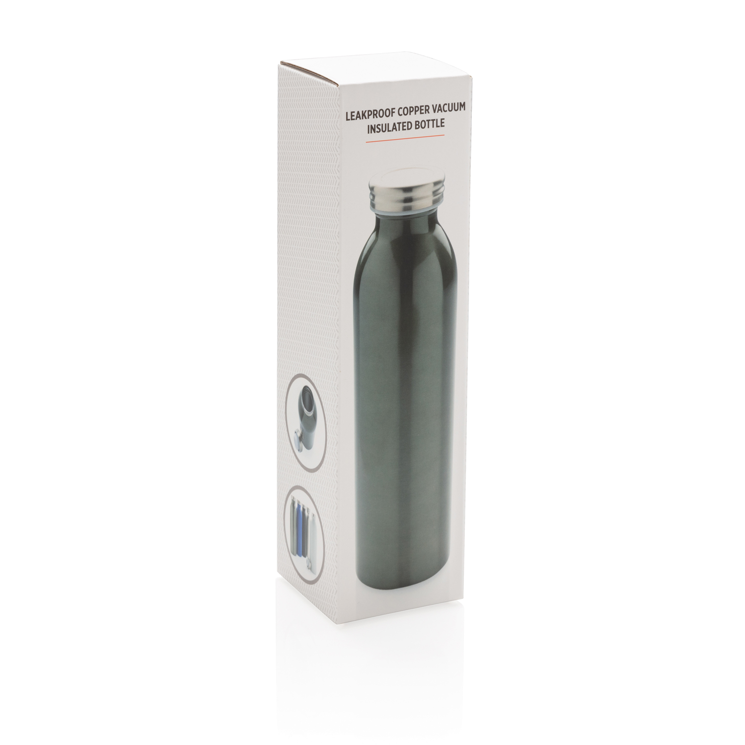Ищете бутылку для ежедневного использования? Тогда эта бутылка с вакуумной медной изоляцией создана именно для вас. Бутылка сохранит ваши напитки теплыми до 8 часов и прохладными до 24 часов. Крышка надежно защищена от протеканий. Форма бутылки идеально подойдет для нанесения логотипа. Объем: 600 мл