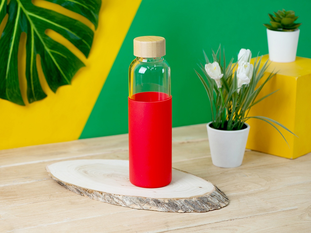 Стеклянная бутылка для воды в силиконовом чехле Refine