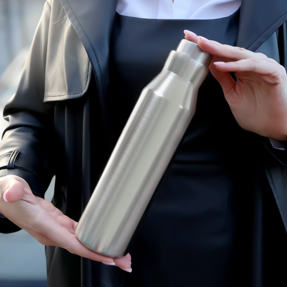 Вакуумная термобутылка Siluet выполнена из высококачественной нержавеющей стали марки SUS 304, которая обеспечивает изделию прочность и долгую жизнь. Благодаря нанесённому дополнительно медному слою на внутреннюю поверхность между стенками бутылки, обеспечивается лучшая термоизоляция, что позволяет сохранять температуру напитка в течение длительного времени! Siluet удобно держать в руке благодаря эргономичному корпусу бутылки, а ее объем - 600 мл - делает эту модель подходящей для рюкзаков и сумок. Полностью герметичная Удобный универсальный объем 600 мл Рекомендуется ручная мойка- Виды нанесений: Гравировка-А2 (оптоволоконный лазер), УФ-печать А2, Гравировка Круговая (оптоволоконный лазер), Круговая УФ-печать, УФ - DTF, УФ-Лак, УФ-Цвет+Лак