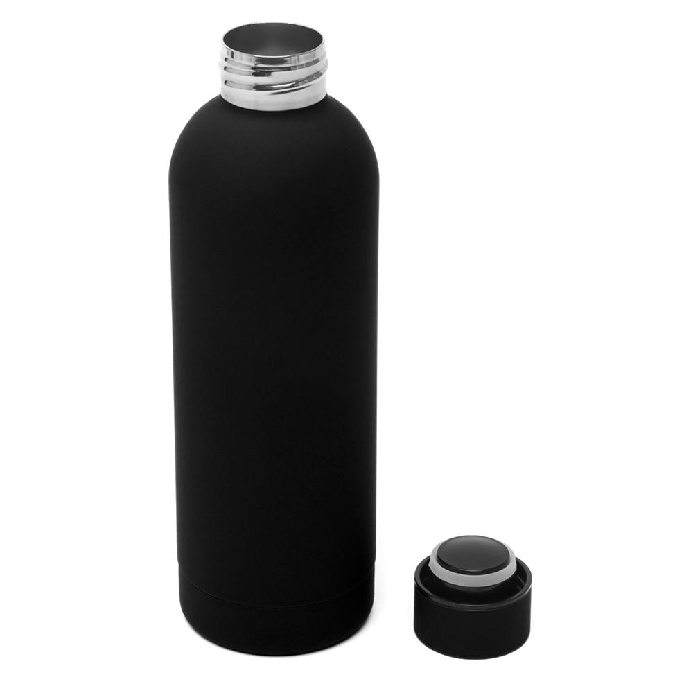 Представляем вам нашу стильную и модную термобутылку объемом 500 мл! Она не только прекрасно сохраняет температуру ваших любимых напитков, но и станет ярким акцентом вашего стиля. Бутылка имеет мягкое прорезиненное покрытие софт-тач, благодаря чему ее приятно держать в руке. Мы предлагаем возможность заказать красивое нанесение с логотипом вашей компании, что делает термобутылку идеальным промо-сувениром. Убедитесь, что ваши клиенты и партнеры не только получат функциональный подарок, но и будут гордиться стильным аксессуаром, подчеркивающим ваш имидж!- Виды нанесений: Гравировка CO2-А2, Гравировка Круговая - CO2, УФ-печать А2, Круговая УФ-печать, УФ - DTF, УФ-Лак, УФ-Цвет+Лак