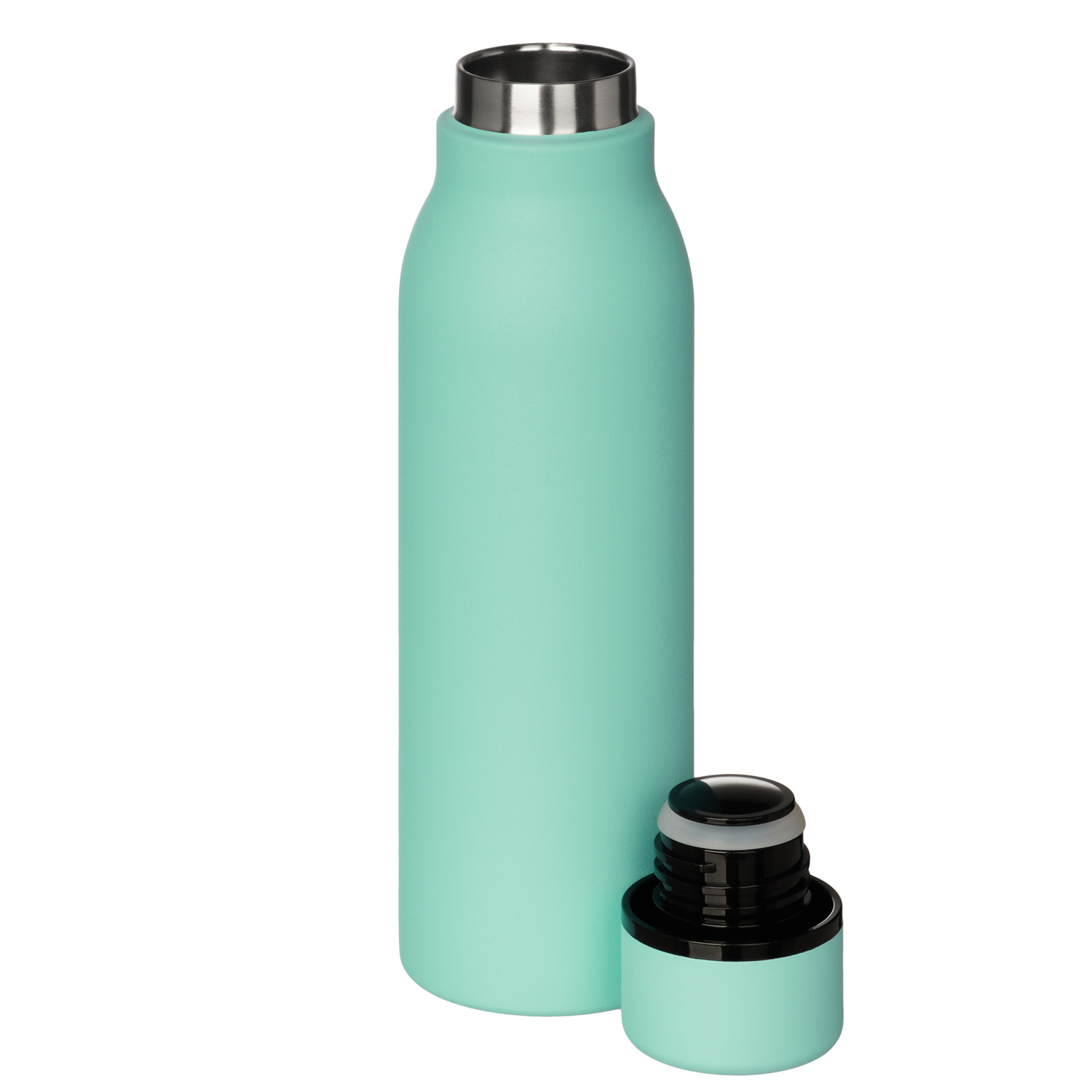 Термобутылку классической формы удобно брать с собой в офис, спортзал, на пробежку или в поход. Крышка в цвет корпуса, полностью литой корпус бутылки, вакуумная герметичная конструкция из двухслойной высоколегированной стали марки 304, порошковое покрытие корпуса и крышки.