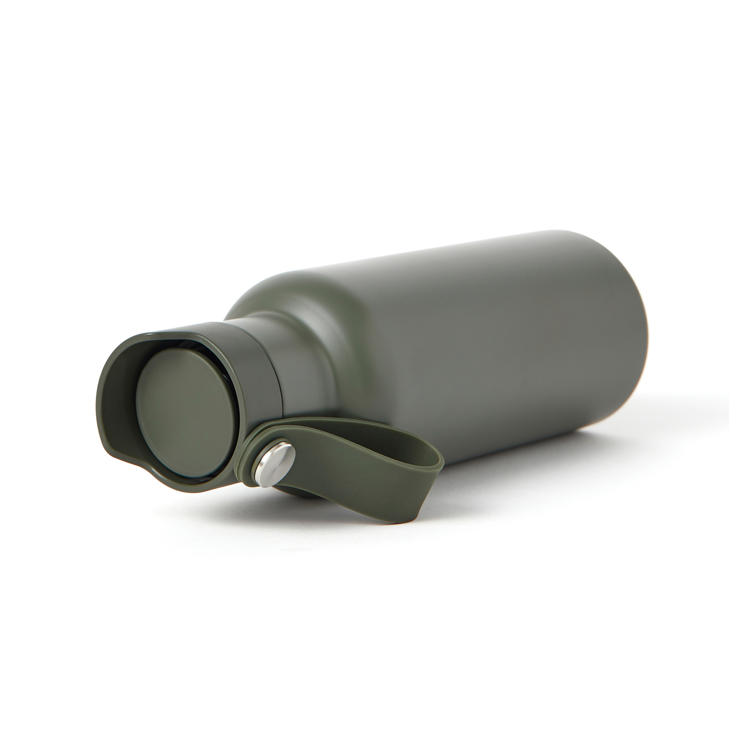 Комфорта добавляет и ремешок в тон: за него можно подвесить бутылку к рюкзаку, ремню или носить в руках, не опасаясь ее выронить.