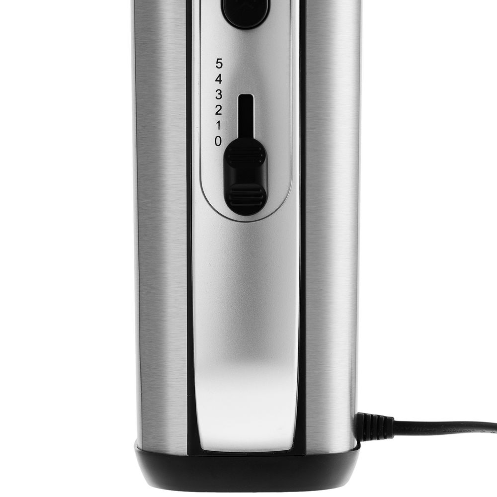 В комплект входят венчики для взбивания крема, мусса, суфле, яичных белков и коктейлей, а также крюкообразные насадки, предназначенные для замешивания теста для бисквита, блинов и панкейков.