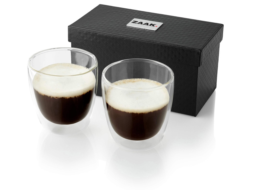 Набор Boda для кофе из 2 предметов. Стаканы для кофе с двойными стенками емкостью 200 мл. Набор предлагается в роскошной подарочной коробке. Пластина для нанесения логотипа включена в комплект. Стекло.