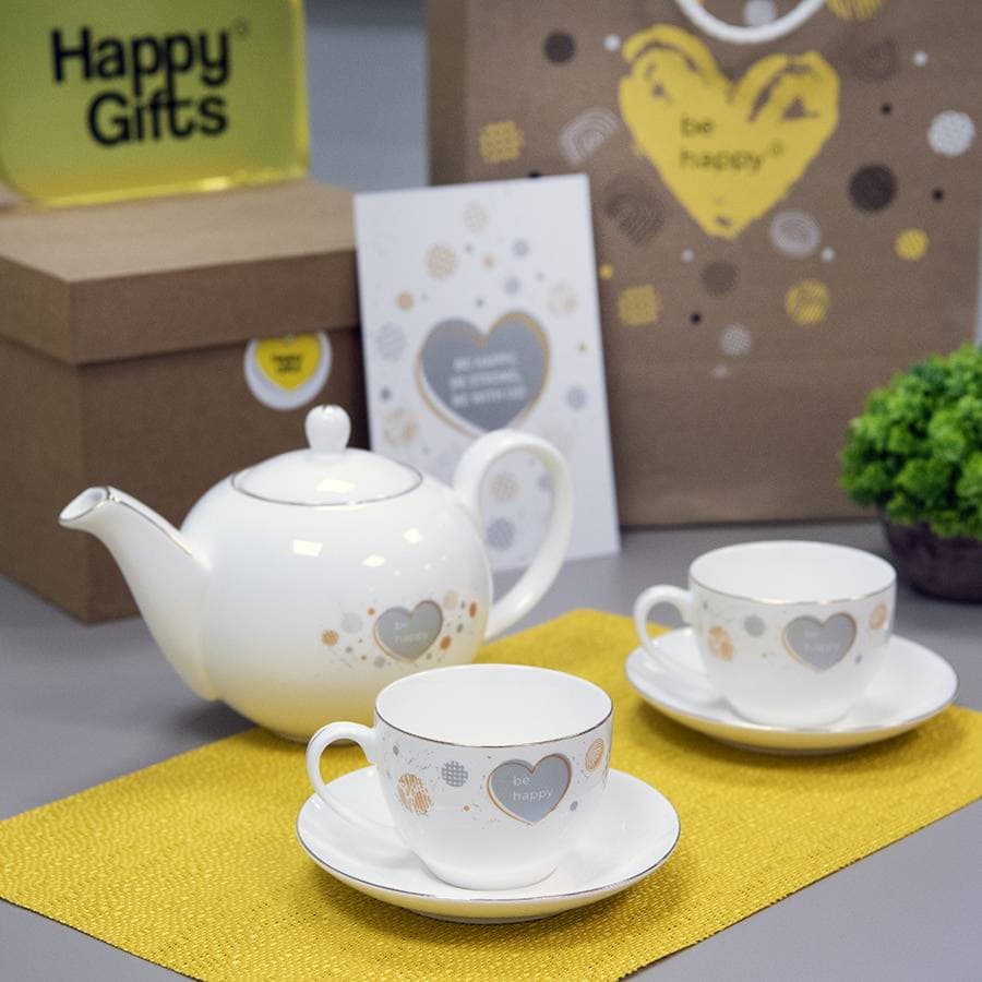 Чайник и две чайных пары GOLD в упаковке, 250мл и 1200мл, костяной фарфор