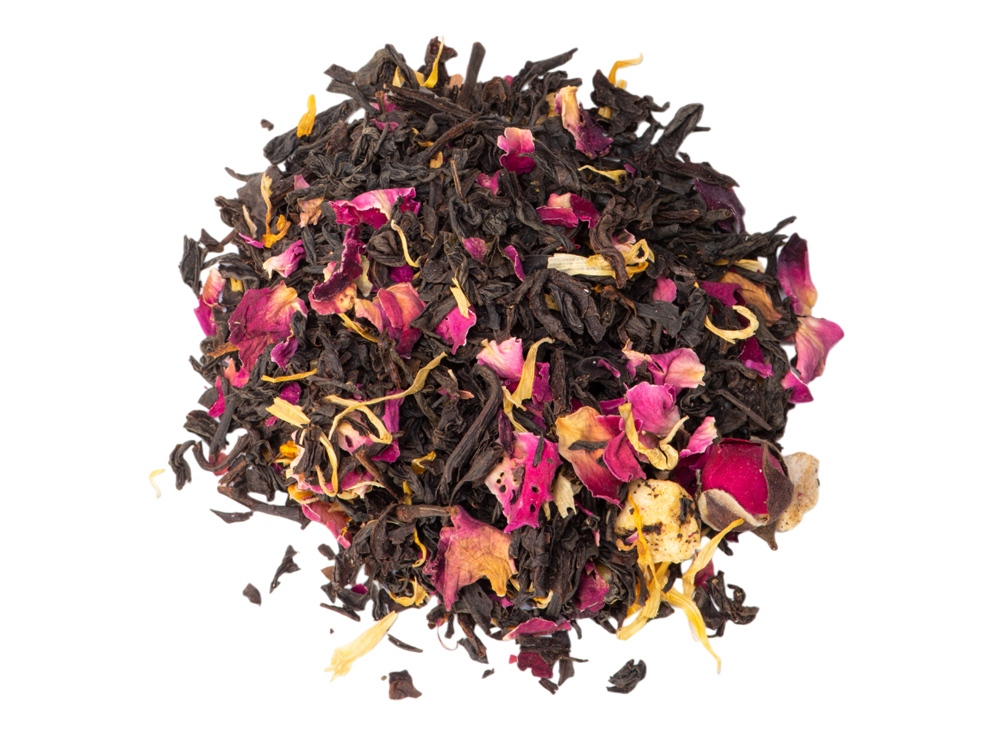 - состав: купаж на основе крупнолистового черного индийского чая, кусочки манго сублимированные, бутоны роз, лепестки роз, лепестки календулы, натуральный ароматизатор;