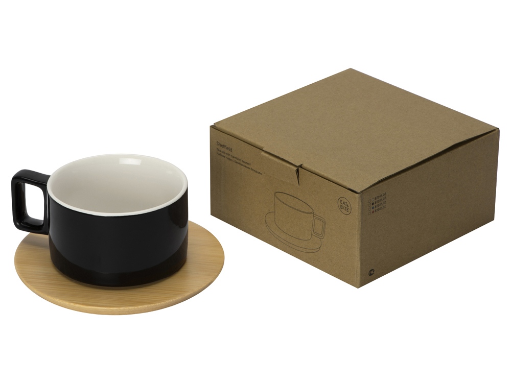 Широкая и устойчивая кружка с удобной ручкой на бамбуковом блюдце — стильно, необычно и практично. Поверхность стола надёжно защищена от повреждений и пятен.