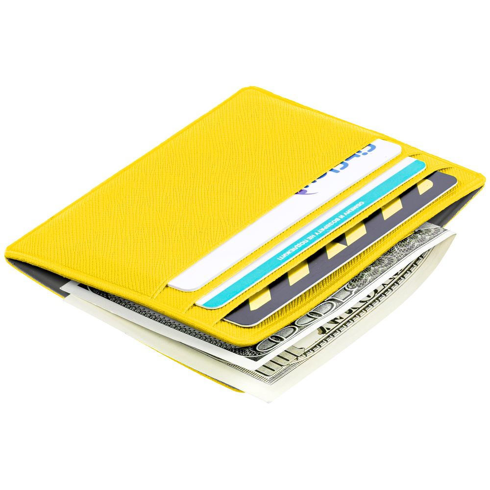 Чехол для карточек из искусственного материала, имитирующего сафьяновую кожу, с шестью отделениями для кредитных карт и одним — для сложенных купюр. -