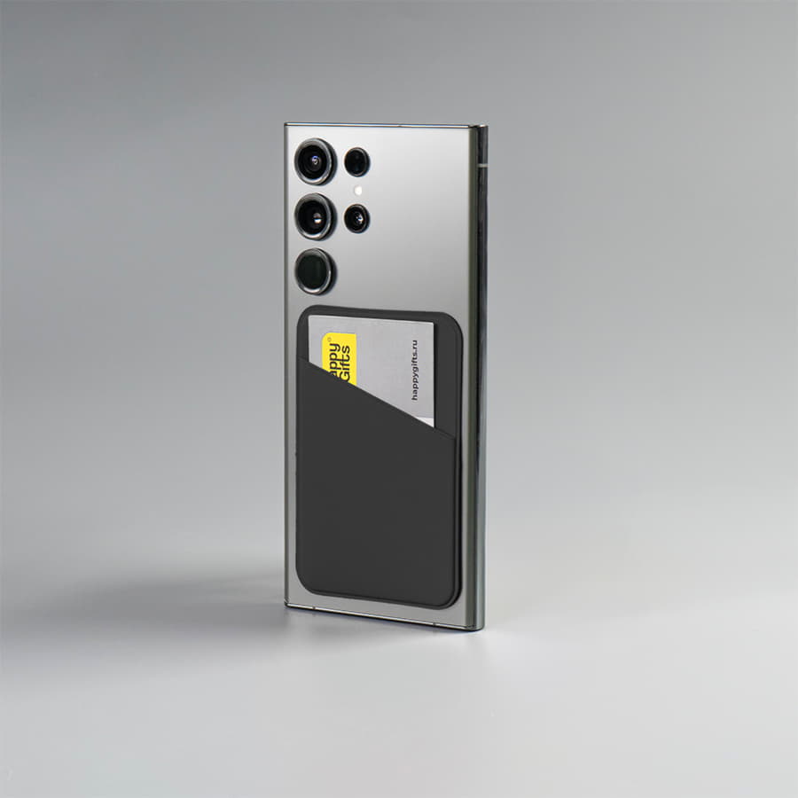 Чехол для карты на телефон Simply, самоклеящийся 65 х 97 мм, черный, PU