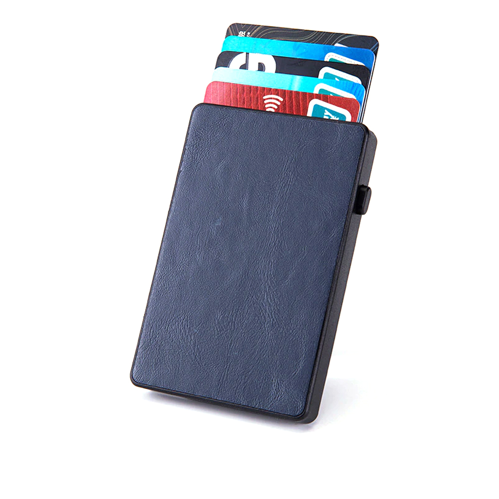Современный практичный способ хранить и использовать банковские карты – держатель Amir с приятным покрытием из искусственной кожи. Бокова кнопка позволяет легко извлекать карты из бокса с защитным покрытием против копирования данных. Может вместить 5 карт, информация носит справочный характер, поскольку количество вмещаемых карт зависит от их толщины.- Виды нанесений: Тиснение, УФ-печать, Тиснение фольгой, УФ-Лак, УФ-Цвет+Лак