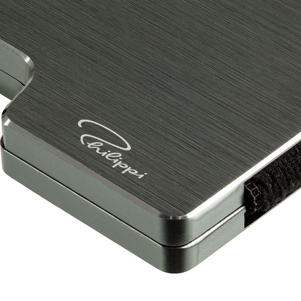 Две части футляра с RFID-защитой соединены резинкой, что позволяет использовать его для большого количества карт. Футляр вмещает до 25 пластиковых карт или до 70 визиток.