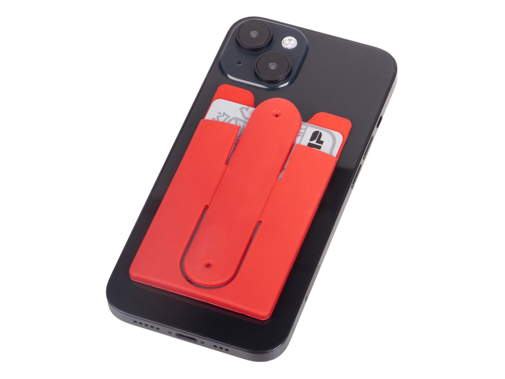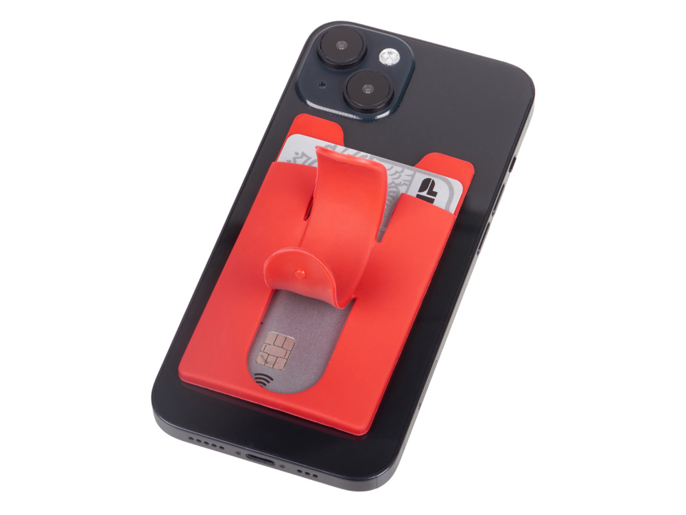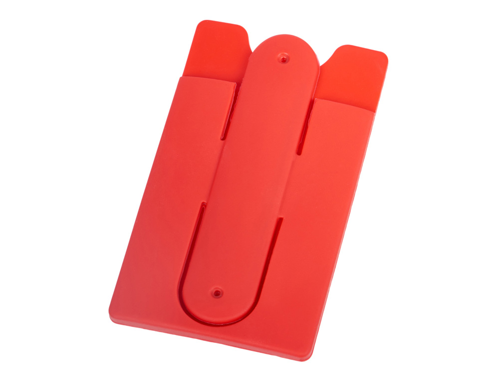Чехол для визиток и кредитных карт с функцией подставки. За счет клейкой основы прикрепляется к обратной стороне телефона или любой другой плоской поверхности. -