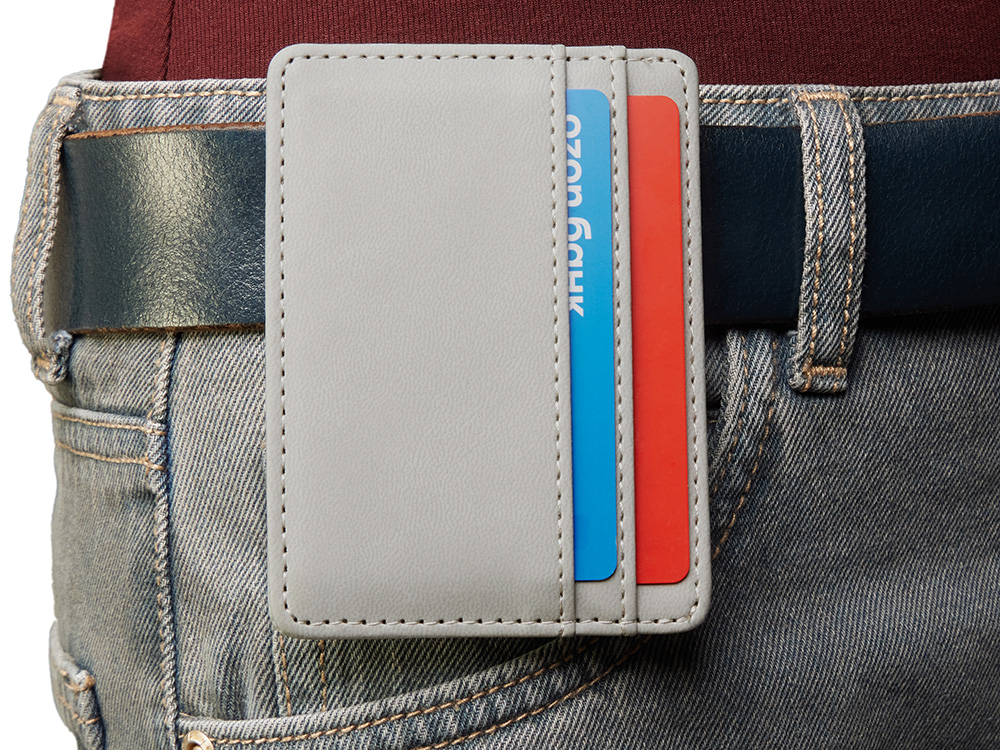 Картхолдер — стильное и практичное решение для деловых людей. В отличие от классических кошельков и портмоне он занимает совсем немного места и с лёгкостью поместится в карман. Данная модель благодаря зажиму на обороте также удобно цепляется за ремень джинс или на ланъярд.
