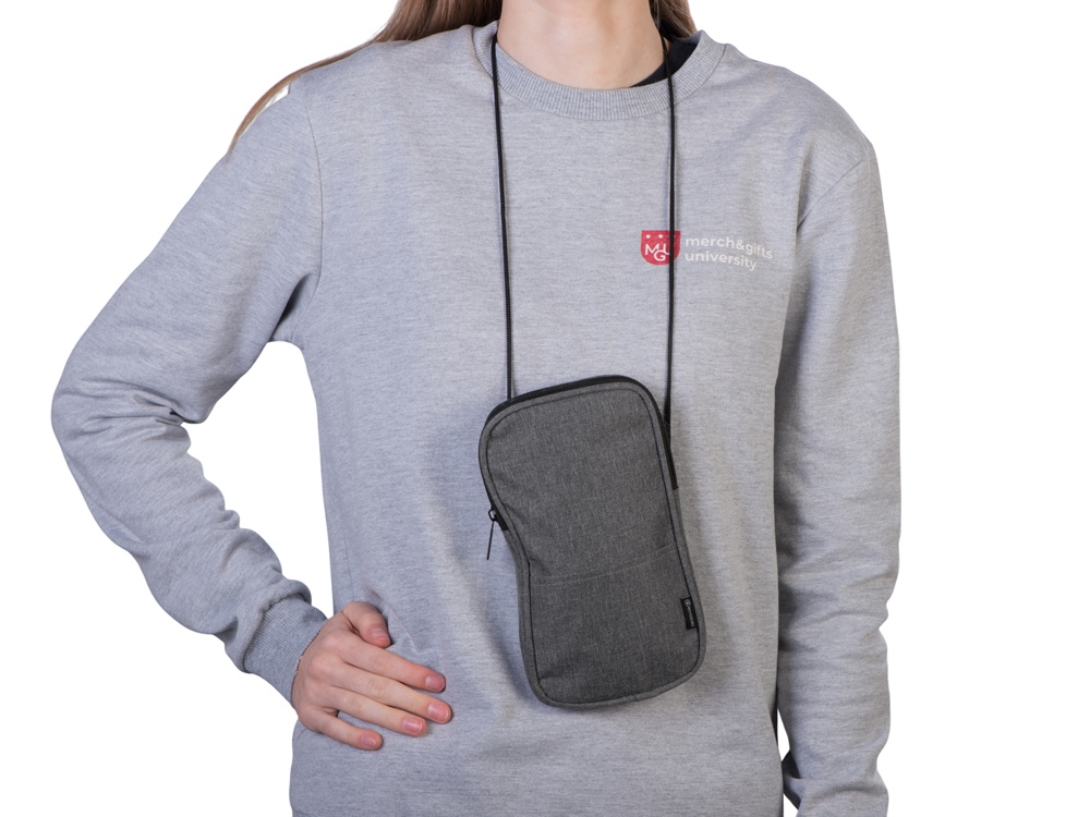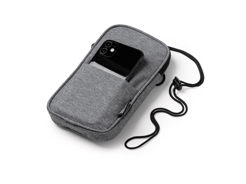 Мобильный чехол из полиэстера RPET. Основное отделение с застежкой-молнией. Внешний карман. В комплект входит шнурок для переноски. Длина шнурка 122 см. -