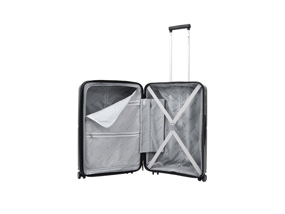 Коллекция SANTIAGO - это искусно созданное сочетание функциональности, строгости и элегантности. Каждый чемодан изготовлен из прочного полипропилена, что гарантирует его долговечность и защиту ваших вещей во время путешествия.