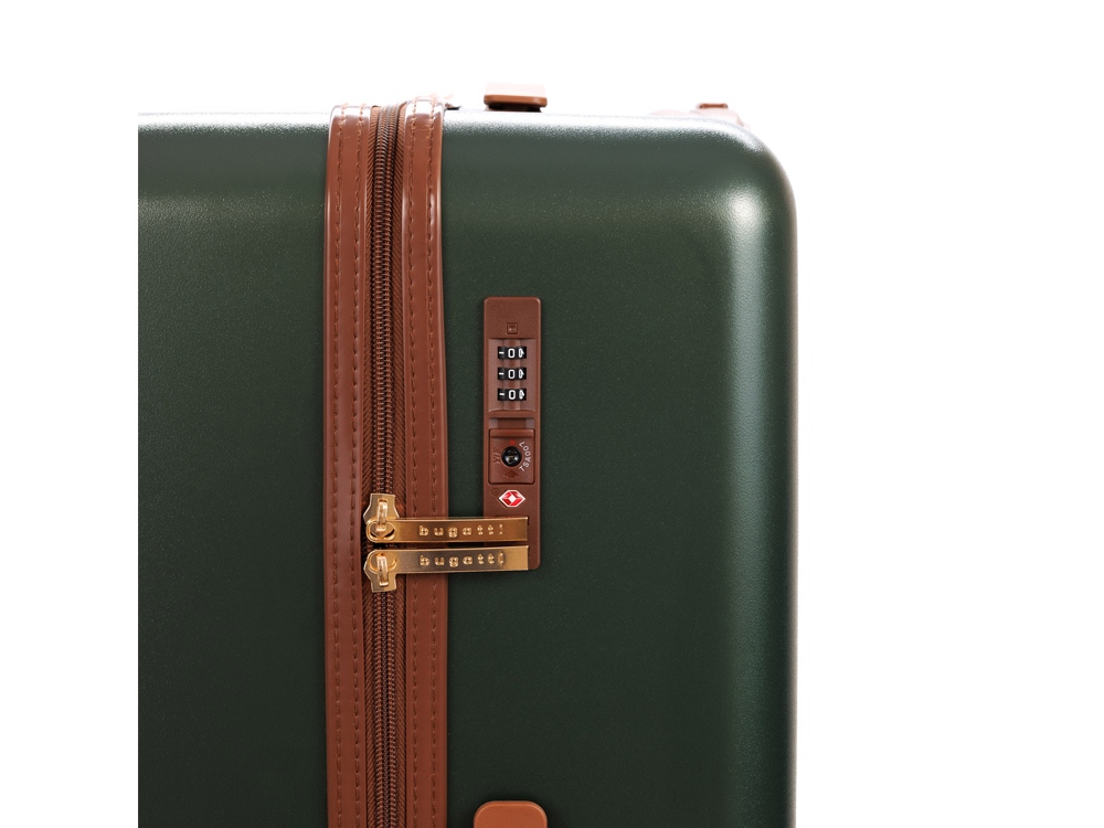 AMELIA воплощает собой неповторимый образ, сочетающий эстетику ретро с современной функциональностью. Вся товарная линейка представлена в великолепных темно-изумрудном и кремовом оттенках. Контрастные детали насыщенного коричневого цвета, бронзовые ручки и фурнитура идеально дополняют дизайн, подчеркивают индивидуальность и выразительность каждой модели. Изготовленные из высококачественного АБС-пластика и поликарбоната, чемоданы AMELIA обладают удивительной прочностью и легкостью. Четыре резиновых колеса с бесшумным ходом и возможностью поворота на 360° обеспечивают плавное передвижение по любой поверхности, сохраняя при этом полную маневренность. Интегрированный замок TSA с трехзначным кодом гарантирует защиту вашего багажа от несанкционированного доступа. Продуманная концепция больших отделений с перегородкой на молнии и дополнительными карманами максимально оптимизирует использование внутреннего пространства. Легкая телескопическая ручка с несколькими положениями фиксации обеспечивает комфорт в использовании для людей разного роста. Удобные ручки сбоку и на дне корпуса облегчают загрузку и выгрузку чемодана. Боковые держатели позволяют разместить дополнительные дорожные аксессуары.