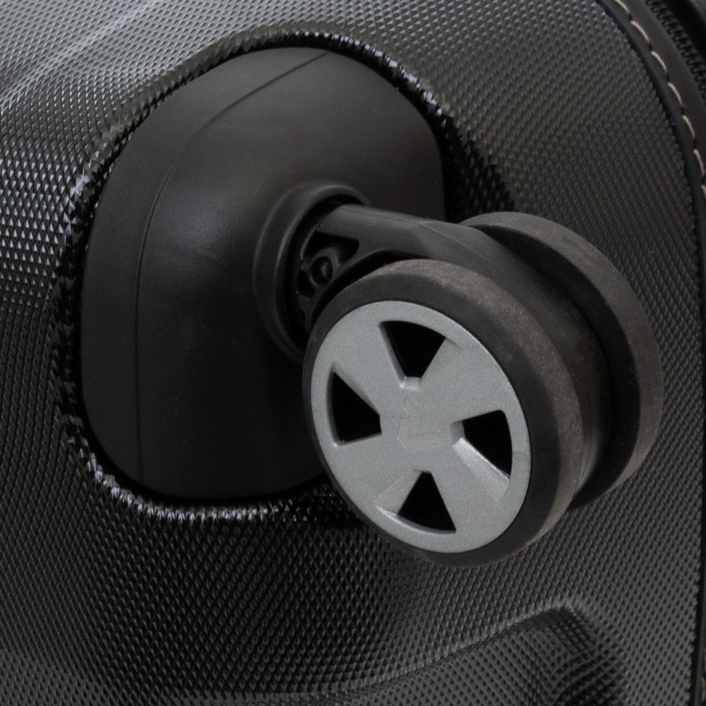 Чемодан E-Lite изготовлен из ударостойкого поликарбоната с интересной ребристой фактурой — смотрится эффектно, а еще противостоит появлению царапин и выгоранию, сохраняя первозданный внешний вид изделия долгое время.
