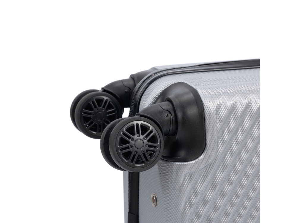 Легкая регулируемая телескопическая алюминиевая ручка и система из 8 колес, вращающихся на 360 градусов, обеспечивает мягкий ход и свободное движение во всех направлениях.