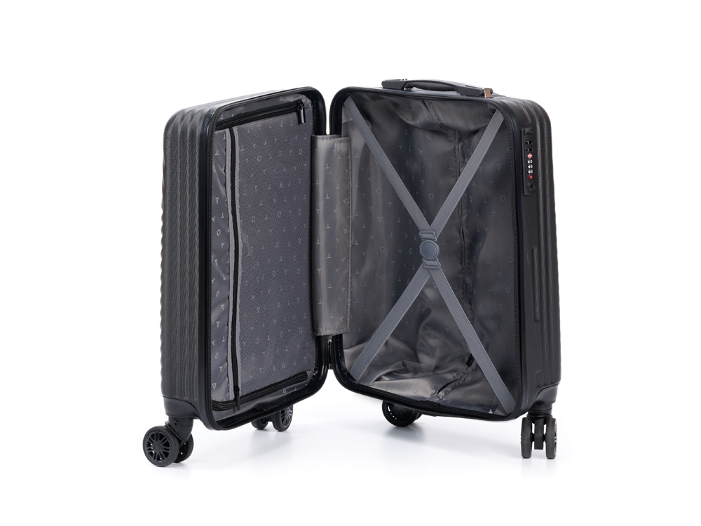 Чемодан полностью раскрывается на 2 вместительных отделения, с перегородкой на молнии и ремнями в форме X для надежной фиксации вещей на месте.