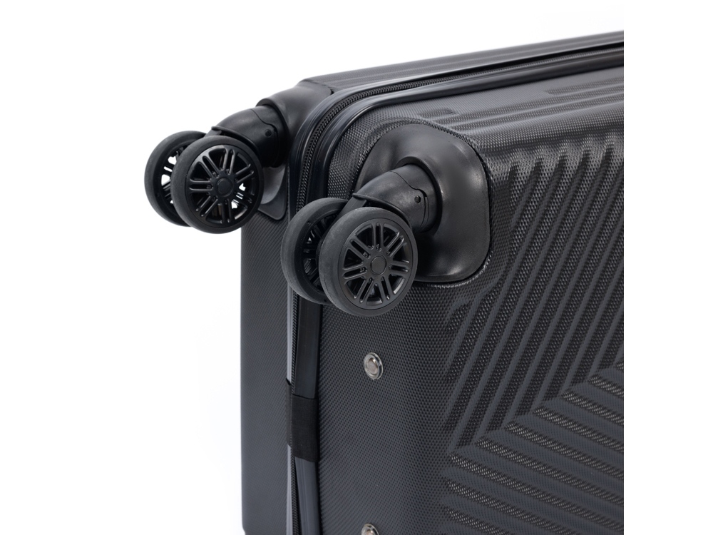 Легкая регулируемая телескопическая алюминиевая ручка и система из 8 колес, вращающихся на 360 градусов, обеспечивает мягкий ход и свободное движение во всех направлениях.
