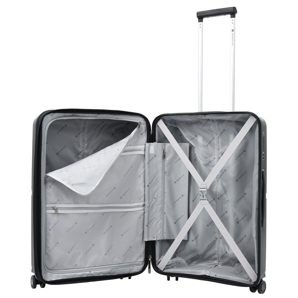 Коллекция Santiago — искусно подобранное сочетание функциональности, строгости и элегантности. Каждый чемодан изготовлен из прочного полипропилена, что гарантирует его долговечность и защиту вещей во время путешествия.
