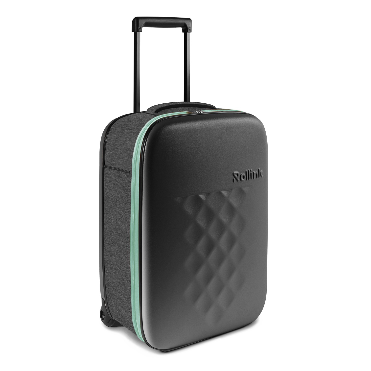 Чемодан складной Rollink Earth 55x40x20 см, 2 колеса, черный/зеленый